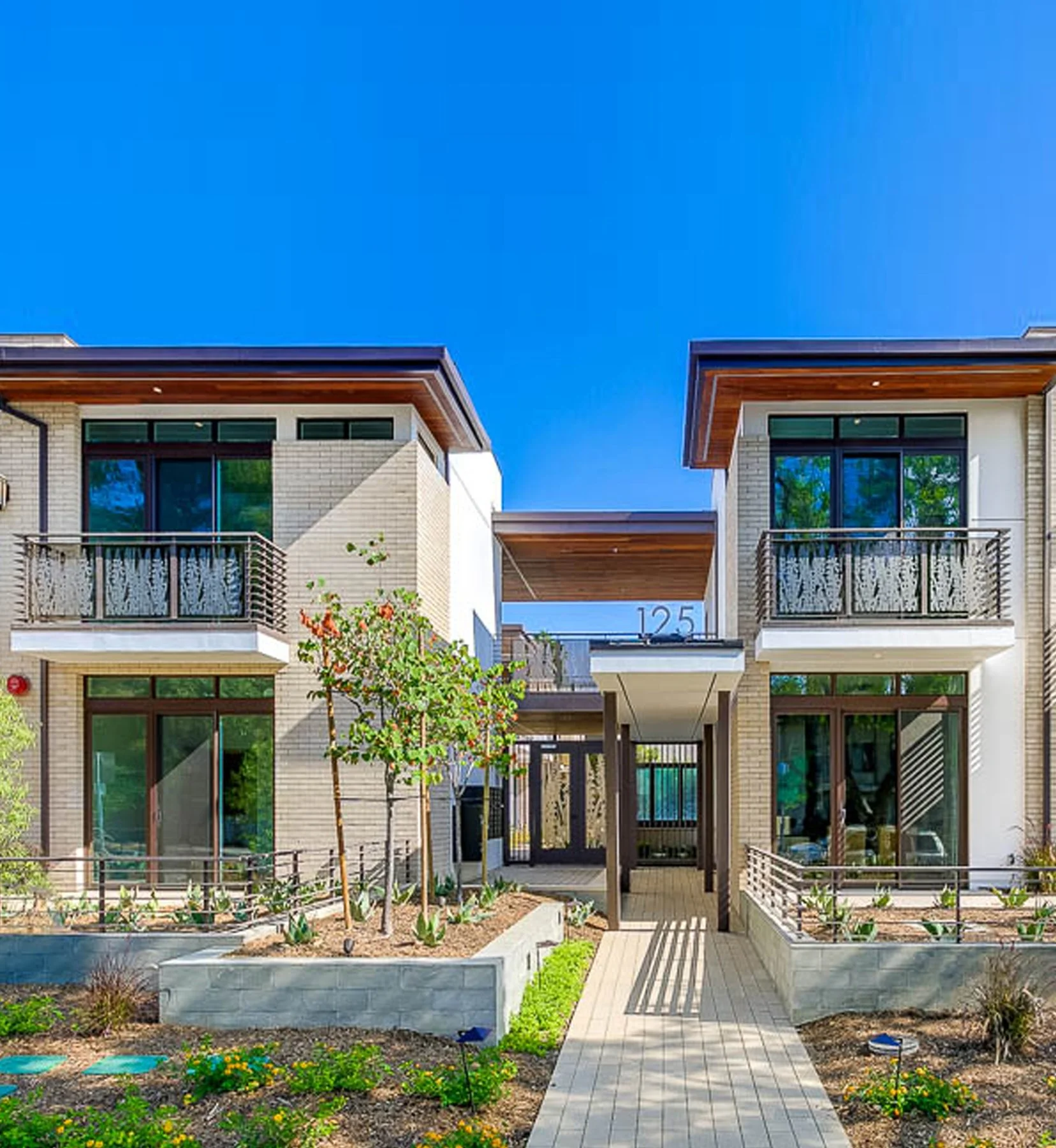 Four three-story townhouses encourage a hip Southern California lifestyle with outdoor loggias, modern materiality, patinaed metalwork, and lush landscape. This project borders the posh South Lake Avenue District, one of Pasadena’s most vibrant, young, & ever-changing communities.